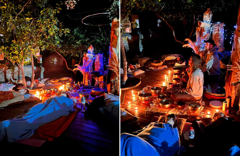 Goście wydarzenia, w towarzystwie mentorki Katya Feya, uczyli się odnajdywać wewnętrzny spokój i przywracać siłę przy medytacyjnych dźwiękach mis tybetańskich w zaciszu oranżerii VDNG. Bez względu na brak światła, spowodowany ciąglymi ostrzałami, udało nam się stworzyć przyjemną i ciepłą atmosferę, która pozwoliła całkowicie się odprężyć.